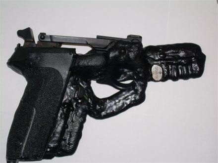 Après l’avoir très consciencieusement nettoyé à l’eau savonneuse puis rincé, il l’a mis dans un four électrique, thermostat 7. Appelé au téléphone, il l’a laissé ainsi pendant près de 20 minutes, avant de le retrouver fondu et totalement hors d’usage. Le gendarme a expliqué qu’il n’était pas le seul à agir ainsi et qu’il l’avait déjà fait à plusieurs reprises, pour des durées plus courtes (10 minutes) sans que rien de fâcheux ne se produise. En apparence, en tout cas, car des déformations invisibles de la carcasse de l’arme peuvent se produire, rendant son usage dangereux. La pratique semblait courante avec le Mac 50, l’ancien pistolet en dotation. Mais il y a une différence de taille entre les deux armes : l’ancienne était en métal, la nouvelle en polymère – une matière qui supporte mal le four thermostat 7 !”